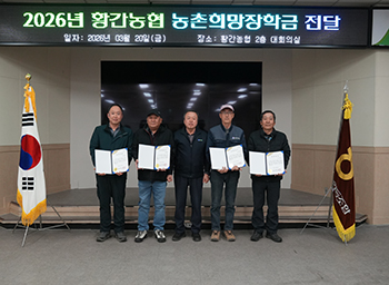 Ȳ°£³óÇù(Á¶ÇÕÀå ¹Úµ¿Çå)Àº Áö³ 20ÀÏ ³óÇùÀç´ÜÀÇ ÈÄ¿øÀ» ¹Þ¾Æ ³óÃÌÈñ¸ÁÀåÇбÝÀ» Àü´ÞÇß´Ù. À̹ø ÀåÇбÝÀº ³ó¾÷ÀÎ Á¶ÇÕ¿øÀÇ ±³À°ºñ ºÎ´ãÀ» °æ°¨Çϰí, ³óÃÌ Áö¿ªÀÇ ¿ì¼öÇÑ ÀÎÀ縦 À°¼ºÇϱâ À§ÇØ ¸¶·ÃµÇ¾ú´Ù. À̳¯ Ȳ°£³óÇùÀº °ü³» Á¶ÇÕ¿ø ÀÚ³à Áß Çо÷ ¼ºÀûÀÌ ¿ì¼öÇϰí ŸÀÇ ¸ð¹üÀÌ µÇ´Â Çлý 4¸í¿¡°Ô 1Àδç 50¸¸¿ø¾¿ ÃÑ 200¸¸¿øÀÇ ÀåÇбÝÀ» Àü´ÞÇß´Ù.